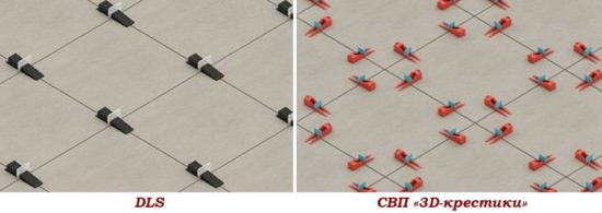 Обе разновидности ДЛС нивелируют соседние плитки путём приведения их в одну плоскость – между нижней и верхней сжимающими деталями, но в первой для сжимания используется резьбовое соединение, а во второй – расклинивание.