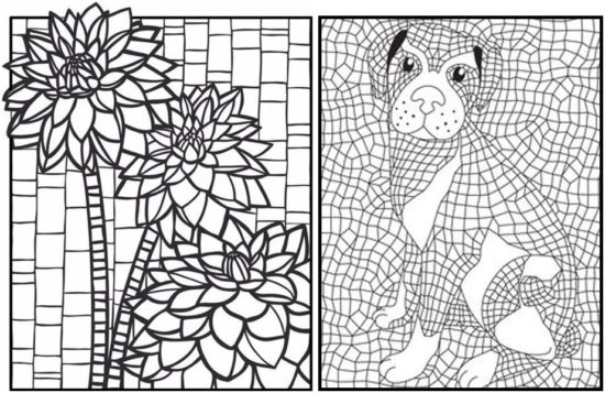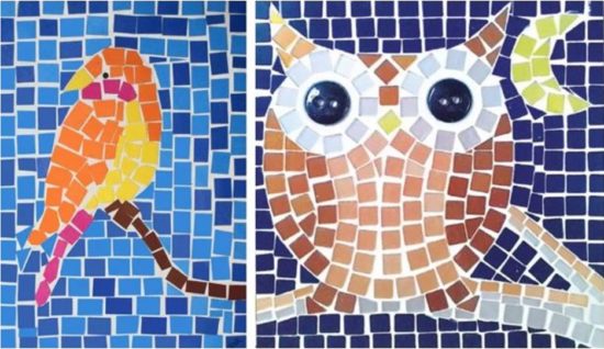 Рисунок для мозаичного исполнения выбирают из законченных изображений, выполненных в цвете, или из так называемых раскрасок, которые можно оформить с учётом освещённости помещения и личных цветовых предпочтений.