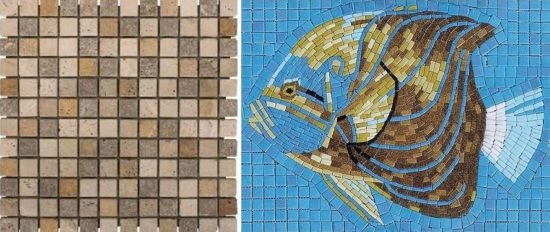 Мозаика – декоративный отделочный материал, представляющий собой миниатюрные плитки (чипы) различных форм и цвета, изготавливаемые из керамики, смальты, стекла, природного камня, металла, древесины ценных пород. Благодаря малому размеру элементов, ими можно отделывать как простые, так и сложные поверхности, а используя разницу в цвете и форме, из мозаики собирают эффектные покрытия, в том числе, с рисунками и орнаментами.