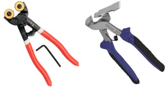 Для изготовления и подгонки мелких элементов удобно пользоваться специальными мозаичными кусачками, не требующими приложения значительных усилий и обеспечивающими точность колки.